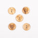 Botões amorosos em madeira de oliveira com um motivo de coração. Os botões feitos da madeira das oliveiras não só são duráveis como amigos do ambiente e têm um aspecto e um toque verdadeiramente orgânico que irá passar para os seus projectos. Talhados de uma matéria natural, cada botão apresenta leves variações quanto à cor e à textura e pode ser usado de ambos os lados se quiser obter um look diferente.